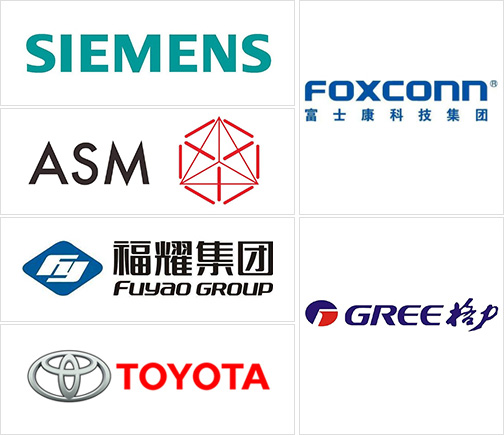 众多国内外知名企业见证:富士康、格力、美的、赫比、福耀、东风、丰田、中国一汽,住友,松下,格兰仕、西门子、广东宏远等。