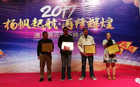 当晚的贡献奖,莫过于优秀销售团队的奖项了,在过去的2016年里,球盟会(中国)激光昆山办事处、浙江办事处、成都办事处在各自服务的区域均向公司交出了满意答卷;还有我们的售后部门,依托为客户售后的良好基础,也向公司证明了不俗的销售成绩。