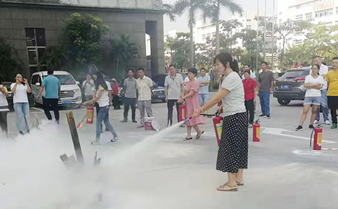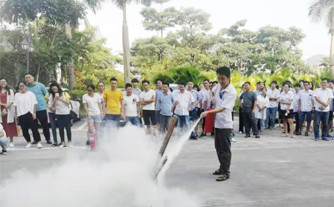安全主任,为全体人员讲解了火灾安全的相关知识,以及火灾突发时紧急措施,并现场示范了灭火器的操作规范和使用方法。