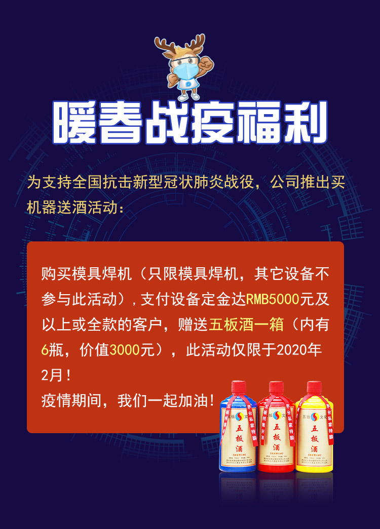 新型冠状肺炎战役福利——买球盟会(中国)激光模具焊接机送五板酒