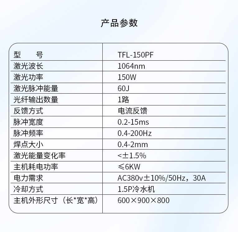 球盟会(中国)激光TFL-150PF光纤激光焊接机,采用能量反馈控制模式,能量较稳定,光纤传输光束质量好,适合0.5mm以下金属不锈钢板材的精密激光焊接,是批量五金球盟会在线登录官网中小功率焊接专用机型。