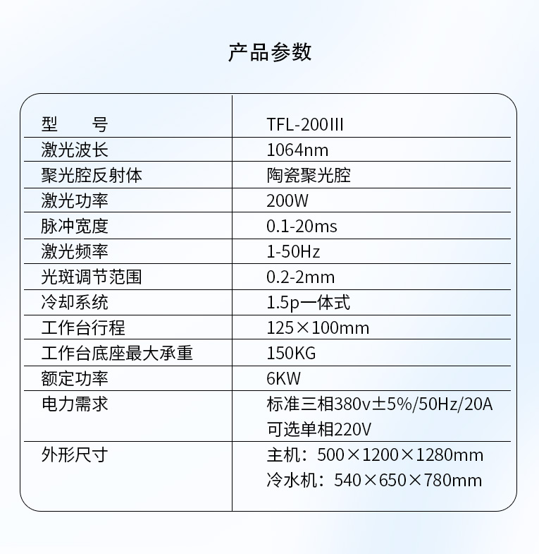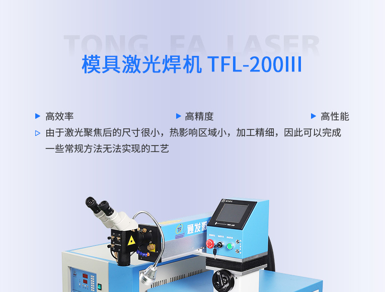 TFL-200Ⅲ型模具激光焊机是球盟会(中国)激光公司在TFL-180Ⅲ的基础进行了改良,采用球盟会(中国)自主研发的二代精密单灯电源为灯泵浦驱动电源,配置触摸屏,操作更方便。主机具备激光头手摇升降与工作台按钮电动升降实现焊接不同厚度模具的激光焊加工。本款机型更适用于各类高精密注塑模具激光补焊,精密塑胶模具零件激光修补,塑胶模具铍铜零件激光烧焊;可对模具使用过程中出现的磨损进行激光修复;对机械加工失误、电火花加工失误,模具减胶设计变更等需要对模具修改,起到关键的作用,可弥补因加工失误造成的巨大损失。