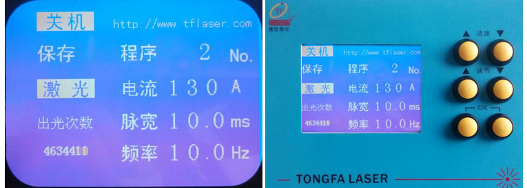 2、本首饰激光点焊机软件可选择中文或者英文界面,对不同加工位置选择相应的激光焊接加工参数。由选择按钮移动光标到相应的参数位置,由调节按钮调节参数的大小;
