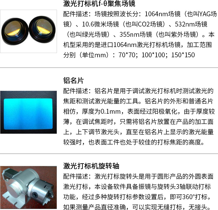 1、本激光打标机拥有优秀的光束质量:与传统的固体激光打标机相比,其基模输出,聚焦光斑直径不到20um。发散角仅为半导体泵浦激光器的1/4。特别适用于精密、精细激光打标。
