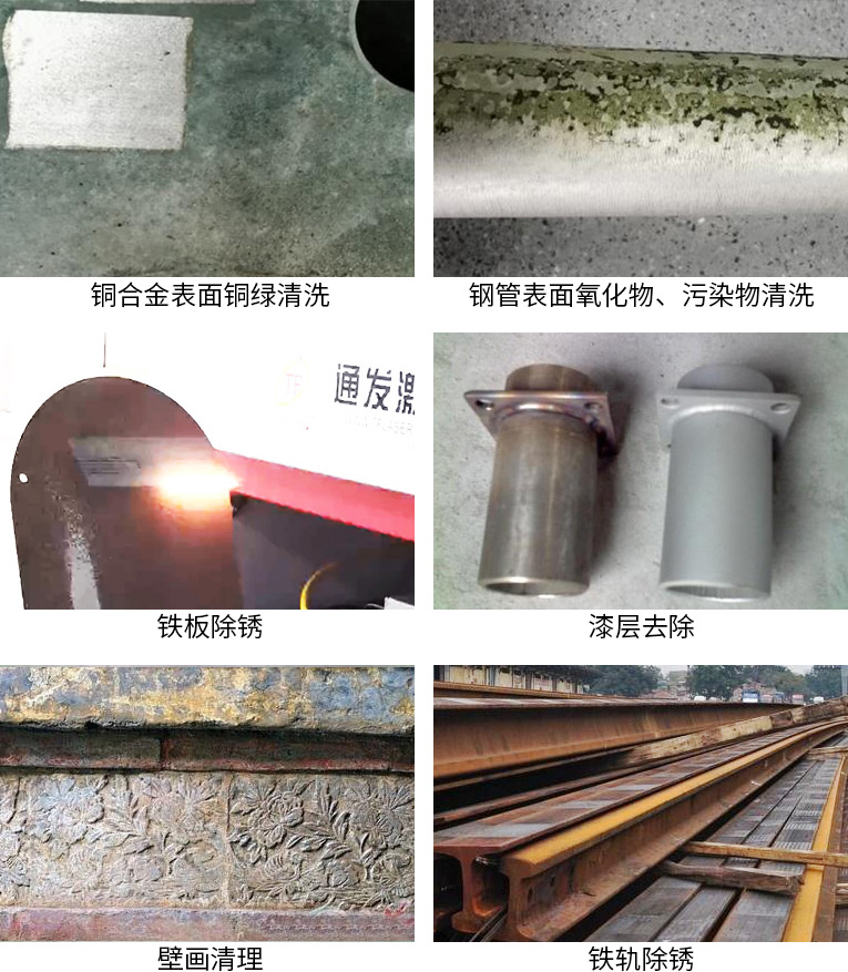 激光清洗具有无研磨、非接触特点,不但可以用来清洗有机的污染物,也可以用来清洗无机物,包括金属的锈蚀、金属微粒、灰尘等,应用功效包括:除锈、脱漆、去油污、文物修复、除胶、去涂层、去镀层。适用于锈层、漆层较厚,油污较深的情况下清洁,以及表面粗糙化、焊缝清洁等工艺环节,效率极高。应用行业:航空、船舶、文物保护、汽车周边、食品行业、轨道、橡胶模具、其他。