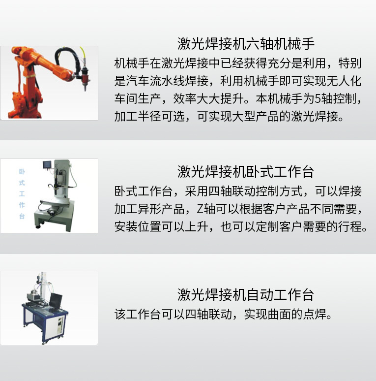 2、强大的PC控制,易于编程、调试和维护。可完成自动或半自动的点焊、对接焊、叠焊、密封焊,针对复杂的平面直线、圆弧及任意轨迹的焊接。